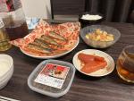 帰り着いてすぐにイカを捌いて前日に買った明太子と酒、みりん、めんつゆ、ごま油と和えて冷蔵庫で寝かします。